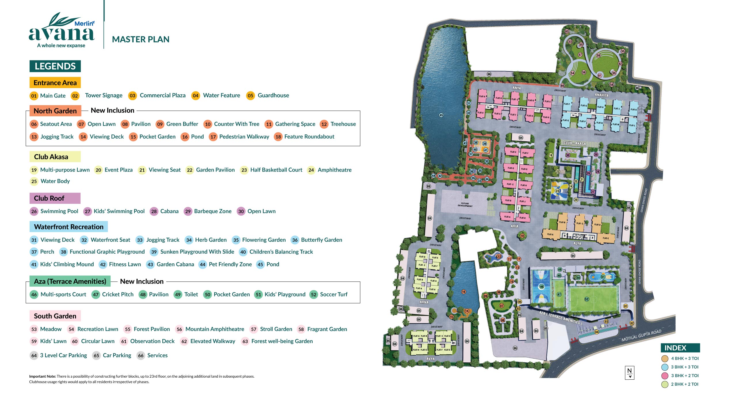 The current buildings, which are on offer comprise 18 to 20 floors and can be extended up to 23 floors. Additionally, there is a possibility of constructing 2 more blocks, up to the 23rd floor, on the adjoining additional land in subsequent phases. This information is being provided for your awareness and consideration.